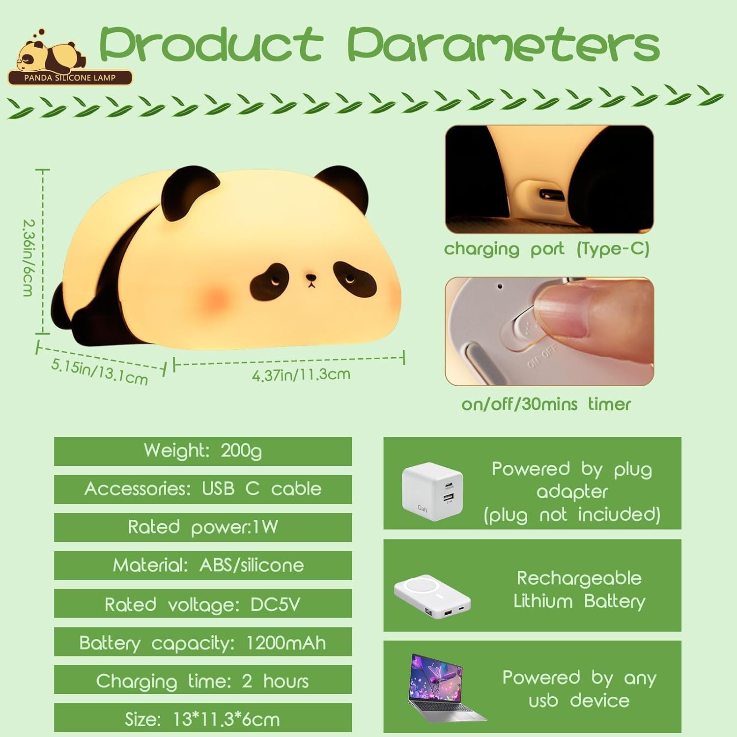 Whether itβs for birthdays, baby showers, or festive surprises, this kawaii panda lamp makes an ideal gift for children and panda lovers alike. Easy to use, rechargeable, and portable β itβs not just a night light, itβs pure cuteness!