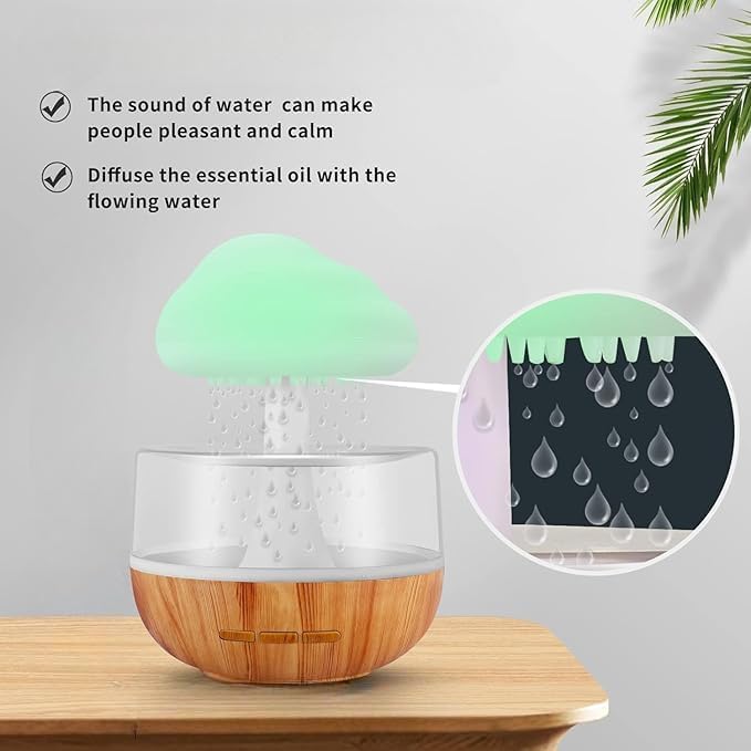 Experience a unique rain cloud shape humidifier that creates a gentle water drop sound effect, bringing the feeling of natural rainfall indoors. Its calming design adds a soothing ambiance, making it a perfect decorative and functional piece for your living space.
